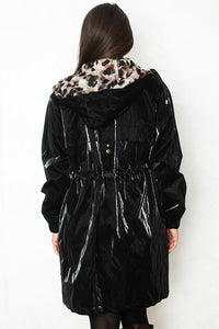Ta čudovit vodoodbojni trenč z rahlo sijočo teksturo združuje šporno praktičnost in couture detaile. Nastavljiv pas oblikuje ženstveno silhueto, kapuca z umetniškim potikom pa doda nepričakovan modni zasuk. Nosite jo čez kavbojke in superge za urbano eleganco ali pa jo kombinirajte s krilom in škornji za drzno preobrazbo dnevnega videza.