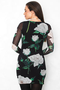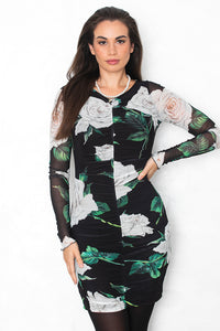 Elegantna obleke iz elastične mrežice očara z nabiranjem po sredini in velikimi belimi svetovi na črni podlago. Idealna je za svečane priložnosti, kjer želiš združiti sofisticiranost in ženstvenost.