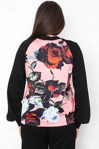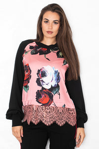 Bluza z živahnim cvetličnim potiskom v kontrastu z enobarvnimi rokavi očara s svojo izrazito barvitostjo. Čipkast zaključek doda prifinjenost, idealna pa je za kombinacije od dnevega do večernega videza.